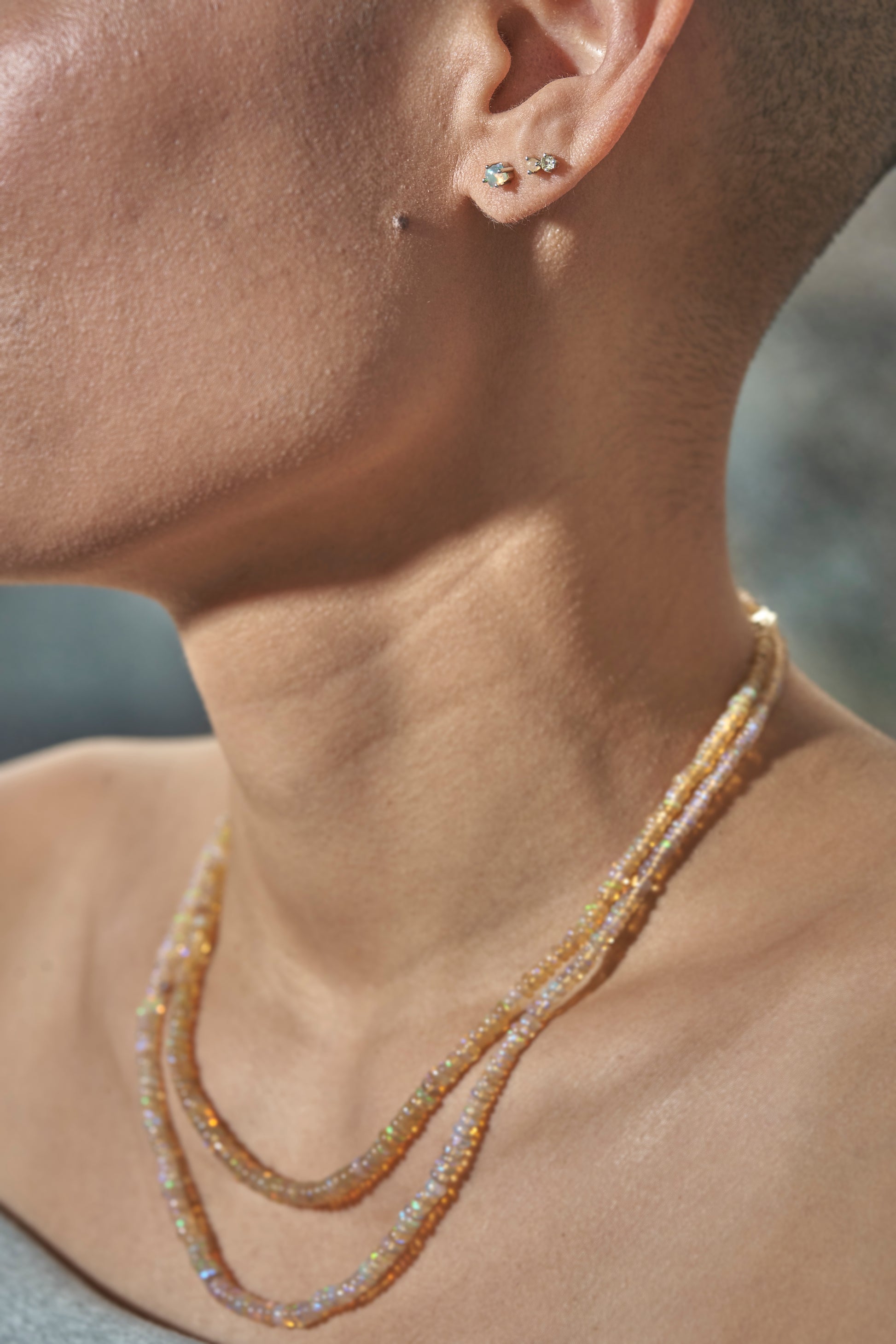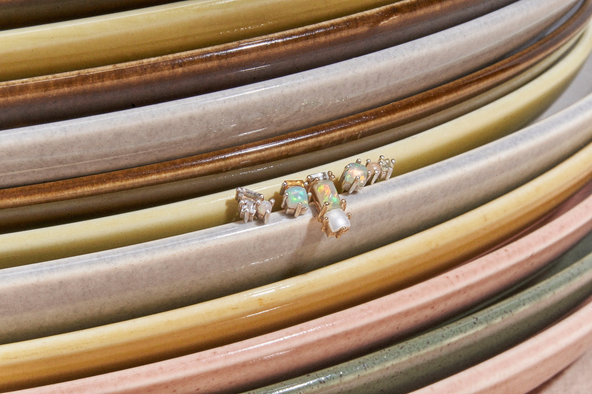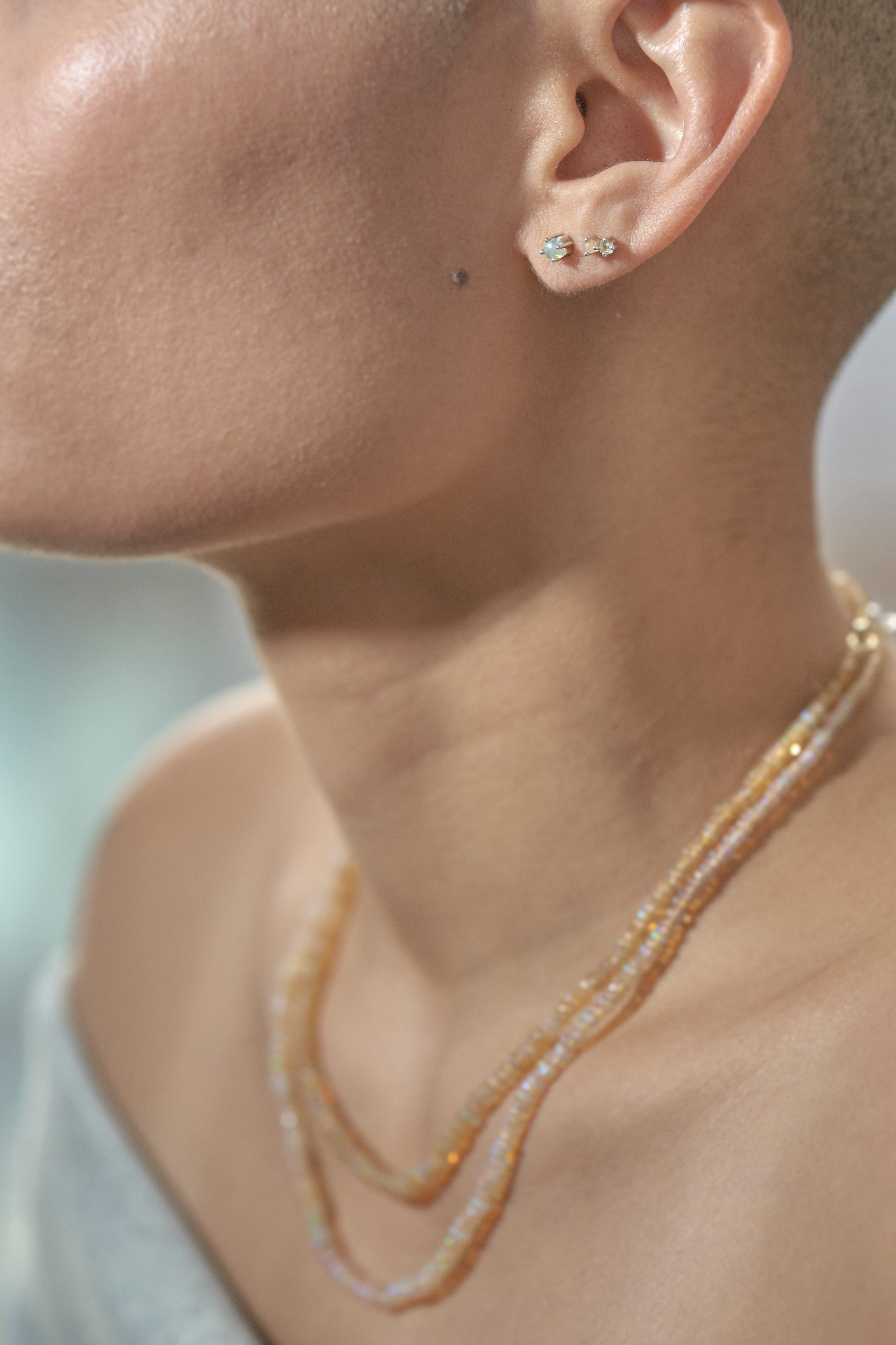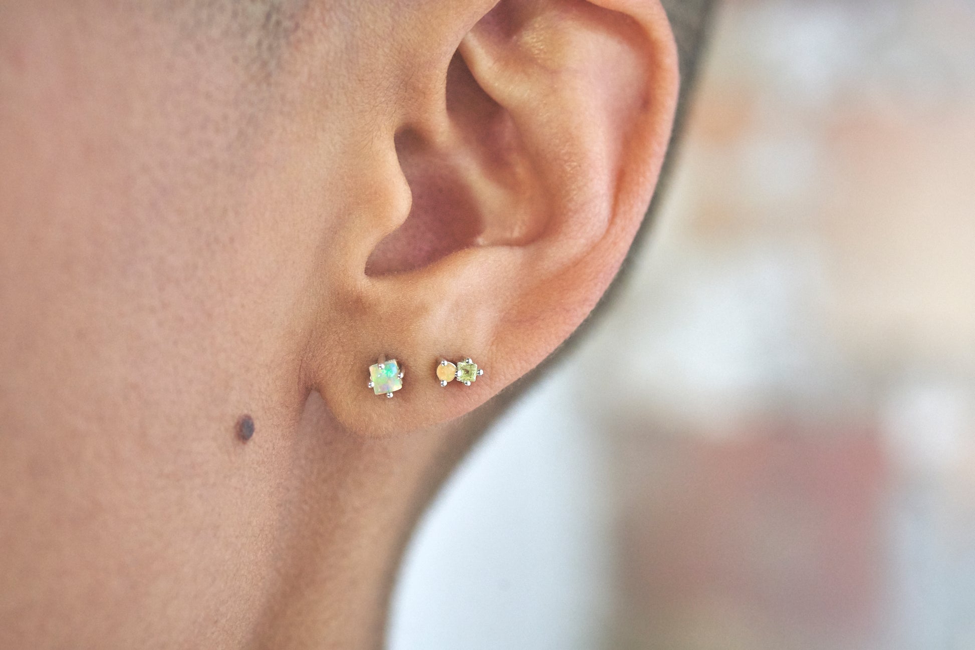 We like to think of the Mav Earring as perfect subtle pop of color and sparkle with natural square Fire Opal stones. Clean and elegant when worn on its own and the perfect neural stone to add into almost any ear stack.
