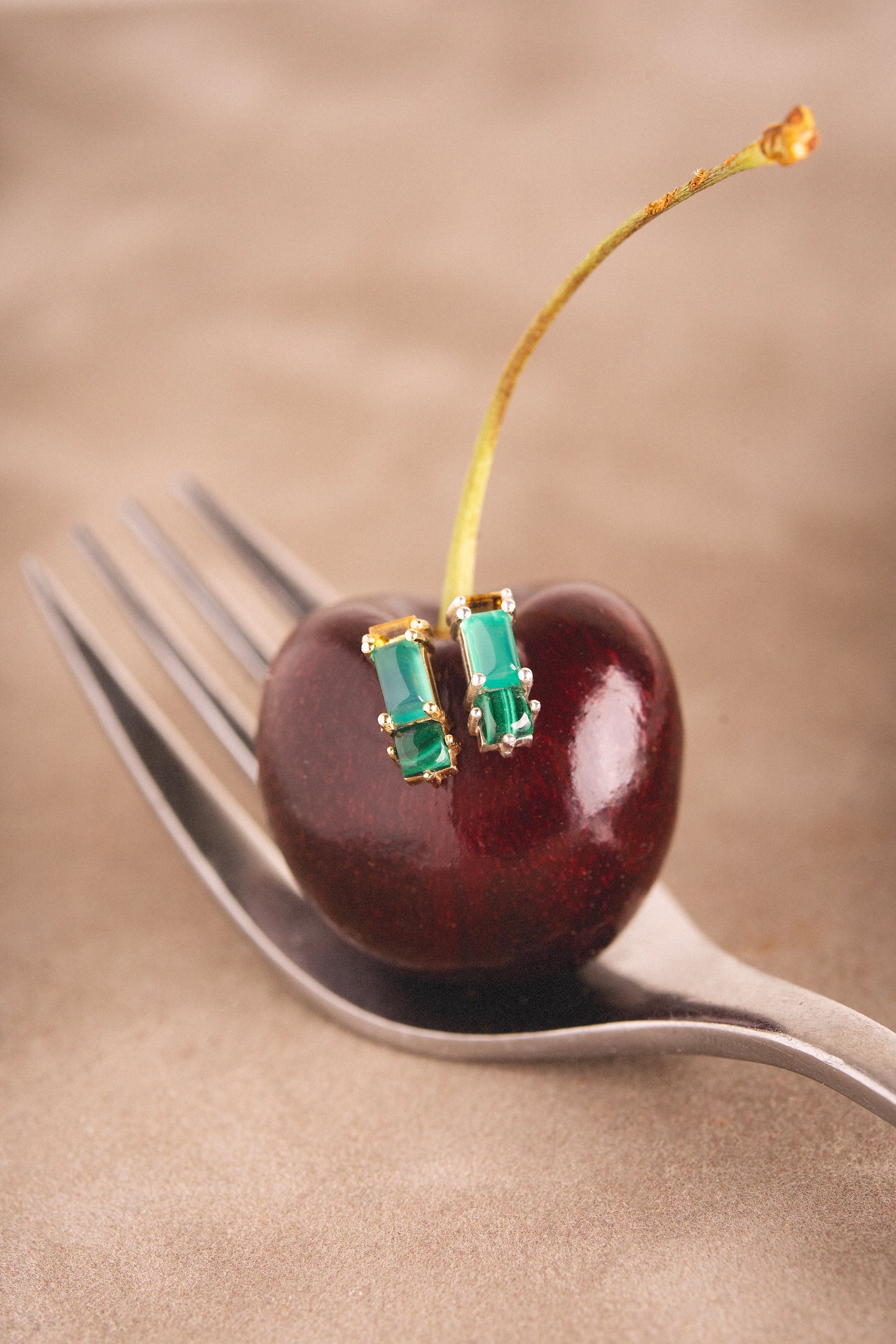 Betty Earring in Green Onyx, Malachite & Citrine